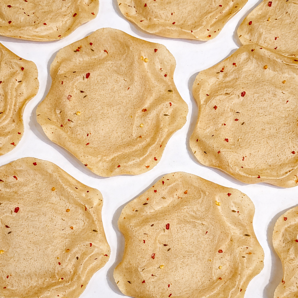 Suji Khichiye is a light and crispy traditional snack made from fine semolina (suji) and subtle spices. Known for its airy texture and satisfying crunch, it can be roasted, baked, or fried based on your preference.